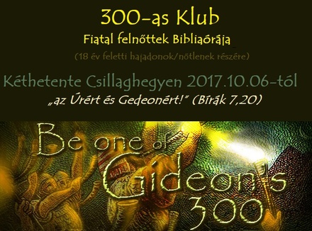 Az elnevezés arra a történetre utal, amikor Isten 300 fős sereggel győzte le a hatalmas túlerőben levő ellenséget. A Bírák könyvében található történet azt mondja el nekünk is, hogy a háromszáz Istenre figyelő ember milyen nagy győzelemnek lehetett részese. Gedeon, vagyis az Isten mai seregébe hívjuk a kiválasztottakat! Biblia történetre, beszélgetésre és egy csésze teára is lehet számítani.