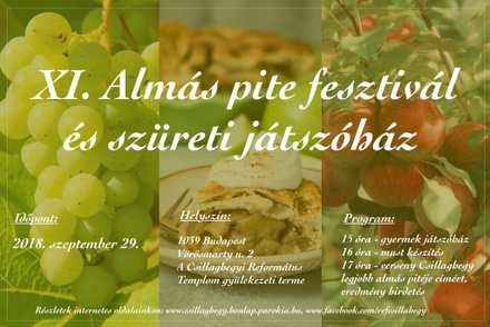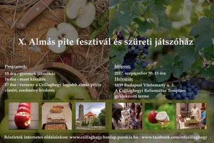 A csillaghegyi reformátusok évente szeptemberben tartják a gyülekezeti termekben és a templom udvarán a szüreti játszóházat. Eredetileg csak egy őszi kreatív délutánnak indult, de rövidesen kibővült a szüreti látványossággal: szőlődarálással, préseléssel és természetesen a must jókedvű ivásával. Mivel a gyermekek mellé csatlakoztak a családtagok, aztán más gyülekezeti tagok és vendégek, a délután kiegészült az Almás Pite Fesztivállal. A kicsit fellengzős elnevezés az almás piték jókedvű versenyét és az összes sütemény még nagyobb jókedvvel történő elfogyasztását jelenti. A legtöbb nevező a hölgyek közül kerül ki, de az utóbbi két évben férfiak által sütött pite lett a győztes. A programot a szürethez kapcsolódó népi játékok és énekek zárják.