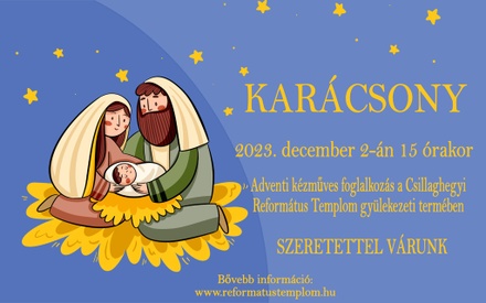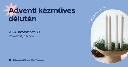 Most decemberben kezdődik az adventi vasárnapok sora. Hagyományosan az első adventi vasárnap előtti szombaton hívogatjuk a gyerekeket, fiatalokat és szülőket a karácsonyra hangoló adventi kézműves délutánra a gyülekezeti terembe. Köszönet Kolonics Ildikónak és a kézműves szolgáló közösségnek a programért!