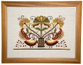 A nyolc nagyméretű hímzett és bekeretezett motívum különféle magyar tájegységek jellegzetes alkotásai alapján készült.