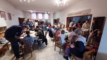 Rendhagyó úrvacsora a gyülekezeti teremben közös asztalnál