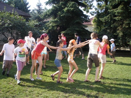 tanította a gyerekeket angolul. Az utolsó napra elhívtuk a szülőket is, hogy a gyerekek megmutathassák mit tanultak. Az angol és hittanórákat követte a tábor egyik közkedvelt része: az ebéd. A konyhában segédkező testvéreink olyan finomakat főztek, hogy már csak azért is megérte eljönni a táborba. A gyerekek sokat énekeltek, játszottak és persze versengtek is, hiszen négy csapatra voltak osztva és különböző feladatok megoldásáért kaptak pontokat.