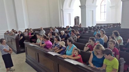 A belvárosban csak leszállni sikerült a buszról, parkolót máshol kellett keresnie. Végre beértünk a templomba, és kezdődhetett a tárlatvezetés. A gyülekezet azt a kettősséget próbálja egyszerre működtetni, hogy a templom egyszerre múzeum és tárlat, valamint istentiszteleti hely is. Mivel az érkezők mind templomba járók voltunk, kicsit idegen volt ez a helyzet, mégis elismertük, hogy egészen jól sikerült e két funkciót összehangolni. A részletes vezetés segítségével feltárult előttünk Debrecen, a gyülekezet, sőt a magyar reformáció szép múltja, hősi korszakai, valamint nehéz esztendei is. A templomtoronyban berendezett kiállítás megtekintésére már szétszéledtünk, ki a maketteket, ki a torony magasságából kínálkozó kilátást, ki pedig mindkettő szemügyre vételét fontosnak tartotta. A debreceni Nagytemplom kiállításként is egészen elvarázsolja az embert, olyan extrákkal megfejelve, mint az eredeti, Vizsolyi biblia példánya.