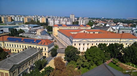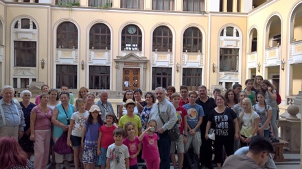 A Kollégiumból villamossal mentünk a Nagyerdőre, hogy egy útba eső étteremben elfogyasszuk az ebédet. Az ebéd sokat javított az akkor már csak pislákoló lelkesedésen, és tovább villamosozhattunk az egyetem épületéhez. Most már külső vezető nélkül idéztük fel az egyetem építésének, alapításának történetet, valamint a mellette található Egyetemi református templom hányattatásait. A következő csoportkép az egyetem aulájában készült, hogy után a szökőkutak mellől csodáljuk meg a nagyszerű épület látványát. A tér végében autóbuszra szálltunk és meg sem álltunk hazáig. Illetve meg sem álltunk volna, ha bizonyos „technikai" megállót nem kellet volna beiktatni. Ekkor történt, hogy némelyek kifogást emeltek a kirándulással kapcsolatban. Nem a látnivalókkal, vagy az utazással, ég csak nem is az ebéddel volt a probléma, hanem a cukrászdával. Azzal a cukrászdával, ami nem szerepelt a programban, mint más rendes kirándulásokon, ahol rendszerint az ebéd után szeréjt ejtjük egy-egy sütemény vagy fagylalt elfogyasztásának. Sikerült megbeszélnünk, hogy most azért nem tettünk így, mert nem volt ez egy „rendes" kirándulás, hanem egy rendkívüli. Majd a „rendes" kiránduláson, szeptember 24-én, lesz cukrászda is.