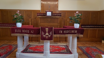 Augusztus 22-én, az új kenyérért hálát adó úrvacsorás istentiszteleten vettük használatba Szeles Béla presbiterünk és felesége által készíttetett és ajándékozott új, bordó színű úrasztali - szószéki terítőket.