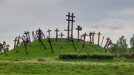 A reggeli egymásnak örvendezés és ismerkedés után most is áhítattal (imádság, igeolvasás, rövid magyarázat) kezdtük a napot. Egyetlen technikai megálló után érkeztünk meg a Muhira, ahol a Muhi csata emlékművénél álltunk meg. Már az autóbuszon felidéztük a történelmi eseményeket, a mongol támadást és az 1241. április 11-én lezajlott csata történetét, amikor a IV. Béla királyunk vezette magyar sereg a félelmetes hírű Batu kán és Szubotáj vezette mongol hadsereggel ütközött meg a Sajó folyó hidjánál, és szenvedtek vereséget. Az emlékmű egy dombot formáz, melyből keresztek emelkednek ki rendezetlen alakzatban. A domb belsejébe alagútszerű kapu vezet, mely kövekkel van kirakva és körbe megerősítve. Itt derül csak ki, hogy a középről kiemelkedő legmagasabb kereszt nem is a dombba van rögzítve, hanem egy betonoszlopon áll.