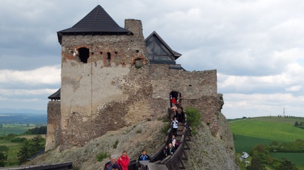 Bebarangoltuk a kiállítási területet és a másik oldalon található, sziklára épített megfigyelő helyet is. Ez Boldogkő egyik sajátossága, mert a vár mellet egy keskeny szikla szirt húzódik, amelyen most biztonságos fa korlátokkal védett úton lehet eljutni a végén található őrhelyre. Innen gyönyörű kilátás nyílik a várra és a környező vidékre is.