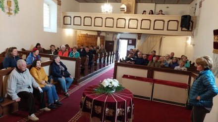 Az Emlékházba elénk jött Godóné Tóth Enikő nagytiszteletű asszony, a helyi gyülekezet lelkipásztora, és átvezetett a református templomba. Bemutatta a templom és a gyülekezet történetét, valamint a közösség életének mai mindennapjait. Együtt énekeltünk és imádkoztunk a monoki és a csillaghegyi gyülekezetekért. Felemelő, igazi lelki találkozás és alaklom lett a látogatásunk a gyönyörűen felújított monoki református templomba.